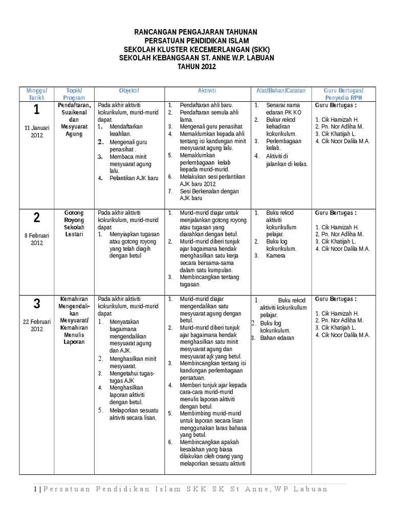 Abidah bt Che Ali bagi menjayakan program lawatan sambil belajar anjuran Panitia Pendidikan Agama Islam dengan kerjasama Badan Dakwah dan Kepimpinan Sekolah bagi sesi 2010. SURAT PEKELILING IKHTISAS BIL. PERANCANGAN AKTIVITI TAHUNAN PERSATUAN AGAMA ISLAM 2021.